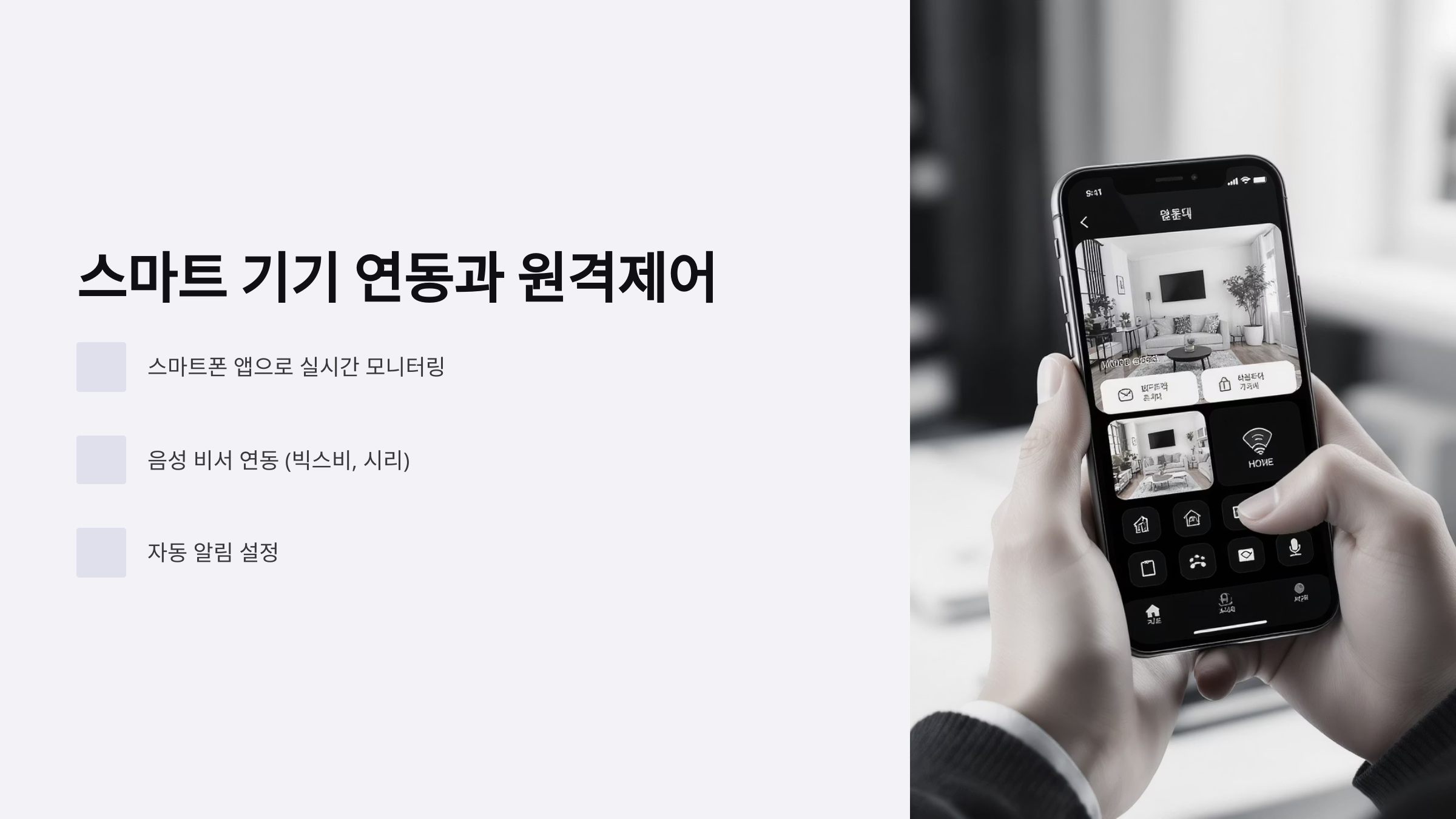 | 현관 | 스마트 도어락, CCTV | 출입 통제, 방문자 확인 |