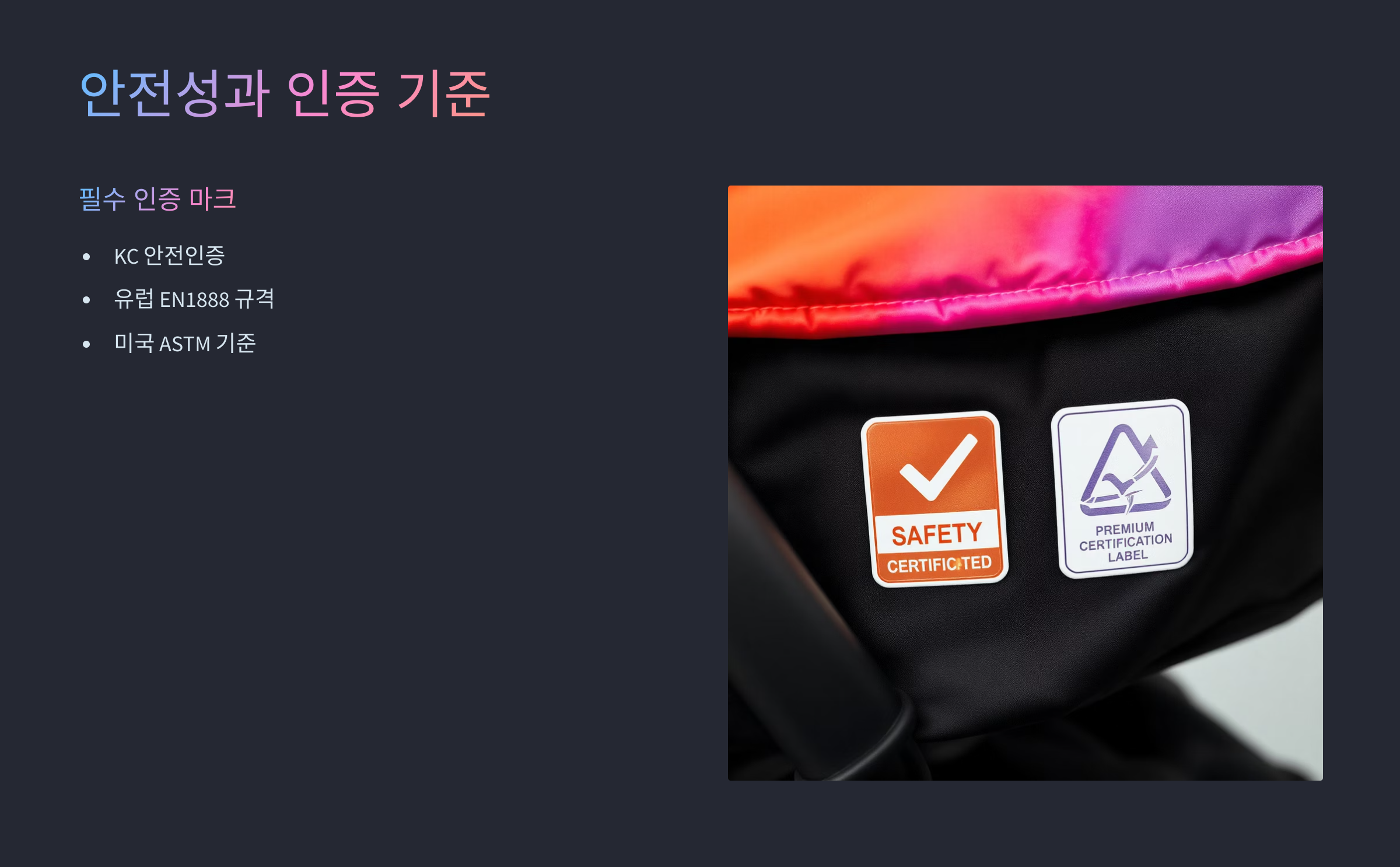 럭셔리 유모차를 선택할 때 가장 중요한 것은 역시 안전성이에요. 국제적으로 인정받는 안전 인증을 획득한 제품인지 확인하는 것이 필수죠. 유럽의 EN 1888 인증, 미국의 ASTM F833 인증, 한국의 KC 인증 등이 대표적이에요. 이러한 인증들은 유모차의 구조적 안정성, 브레이크 성능, 안전벨트 강도, 유해물질 함유 여부 등을 종합적으로 평가한답니다.