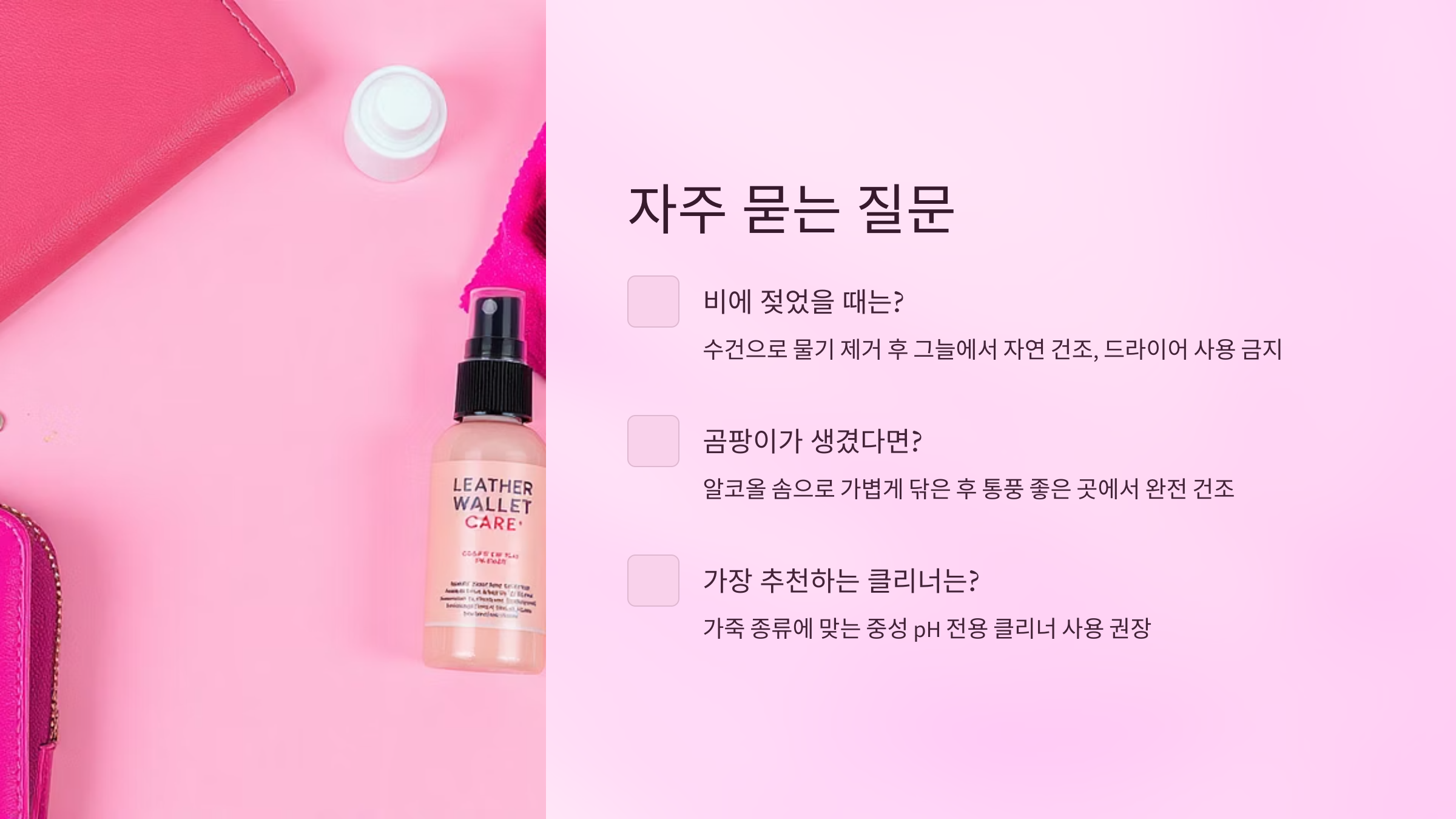 Q8. 수제 지갑과 대량생산 지갑의 관리법이 다른가요?