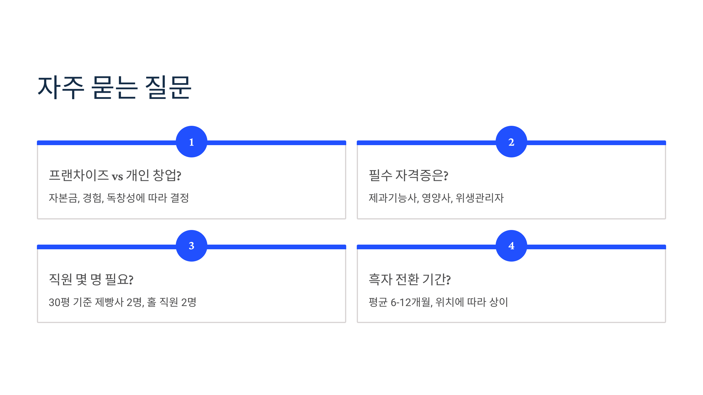 A1. 직접 제빵 기술이 없어도 창업은 가능하지만, 기본적인 이해는 필요해요. 전문 제빵사를 고용하는 방법도 있지만, 품질 관리와 메뉴 개발을 위해서는 오너가 어느 정도 제빵 지식을 갖추는 것이 유리해요. 제빵학원이나 전문 교육 과정을 통해 기초를 익히시는 것을 추천드려요.