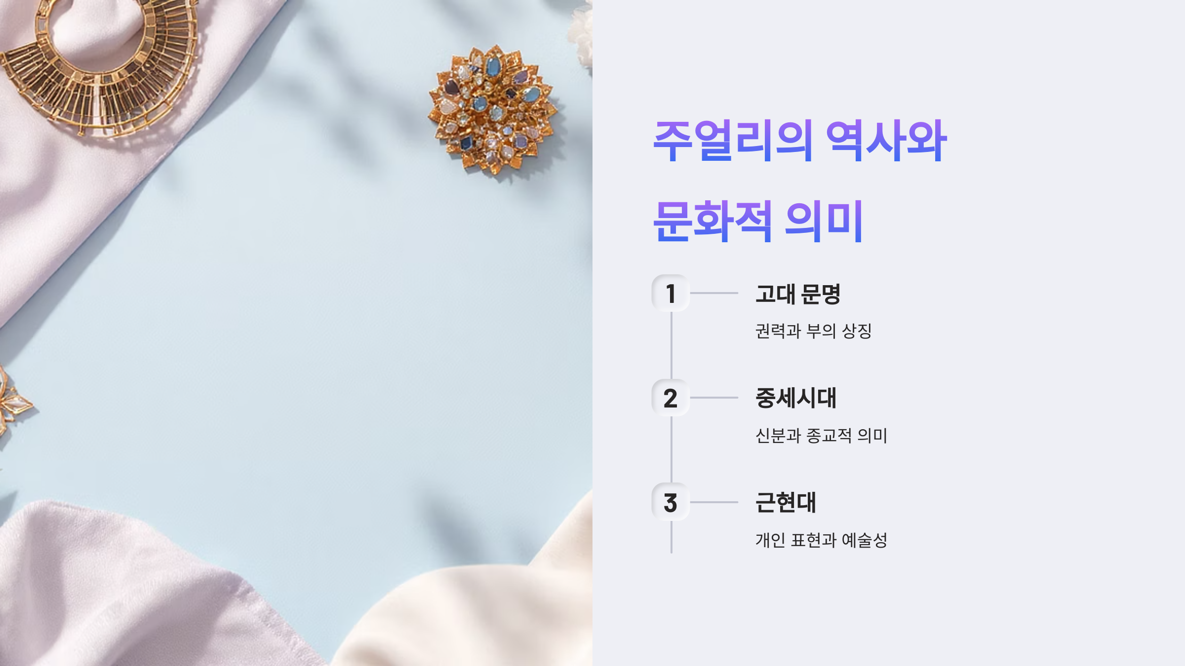 주얼리의 역사는 인류 문명과 함께 시작되었어요. 약 10만 년 전 네안데르탈인들이 조개껍질로 만든 목걸이를 착용했다는 증거가 발견되었답니다. 고대 이집트에서는 주얼리가 신분과 부의 상징이었고, 사후세계를 위한 부장품으로도 사용되었어요. 클레오파트라가 착용했던 화려한 보석들은 지금도 많은 사람들의 상상력을 자극하고 있죠.