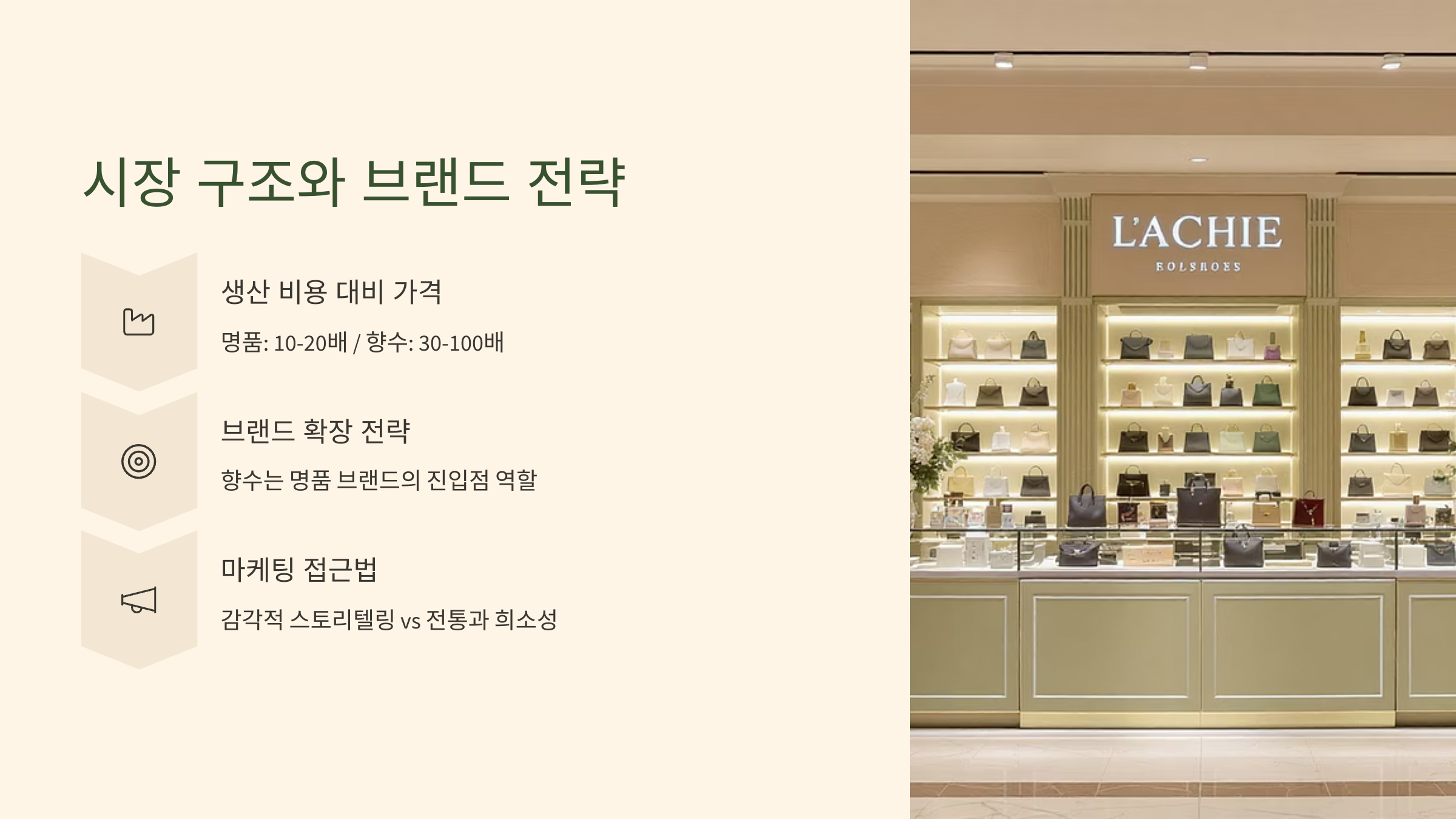 향수와 명품 시장의 구조는 근본적으로 다른 특성을 보여요. 향수 시장은 상대적으로 진입 장벽이 낮고 다양한 플레이어가 공존하는 반면, 명품 시장은 소수의 거대 그룹이 지배하는 과점 구조를 띠고 있어요. 이러한 시장 구조의 차이는 브랜드들의 전략과 소비자 선택의 폭에 직접적인 영향을 미치죠. 두 시장의 역학을 이해하면 왜 특정 제품이 특정 가격에 판매되는지 알 수 있어요.
