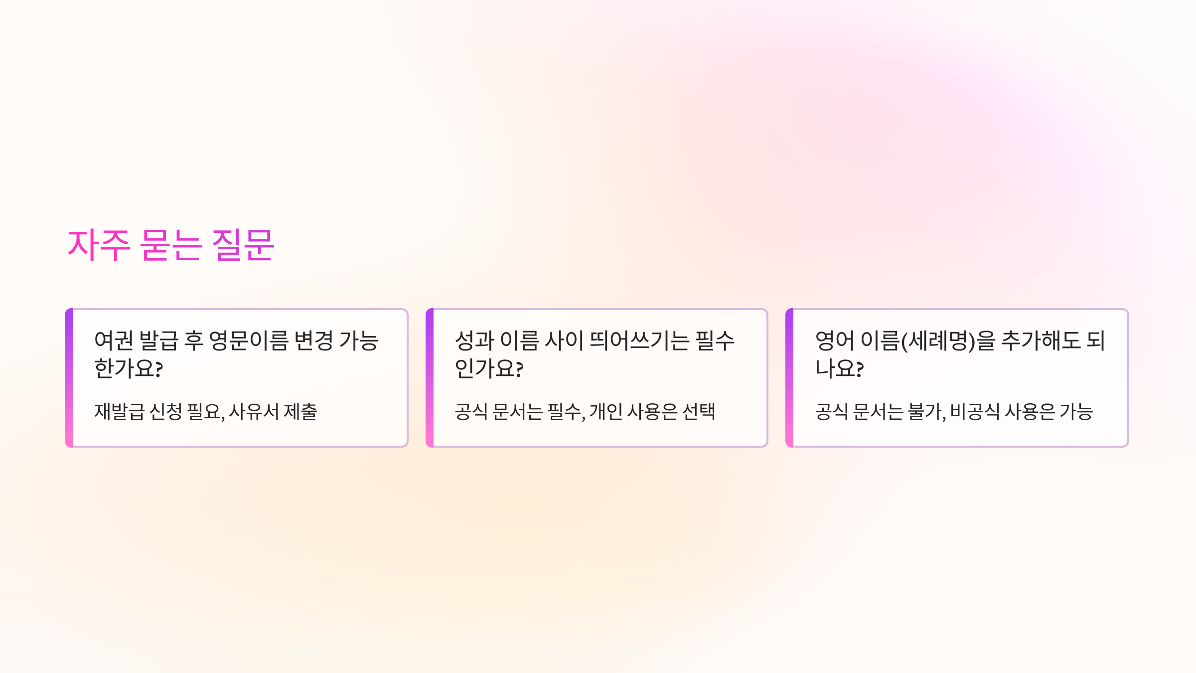 Q3. 결혼 후 배우자의 성을 영문이름에 추가할 수 있나요?