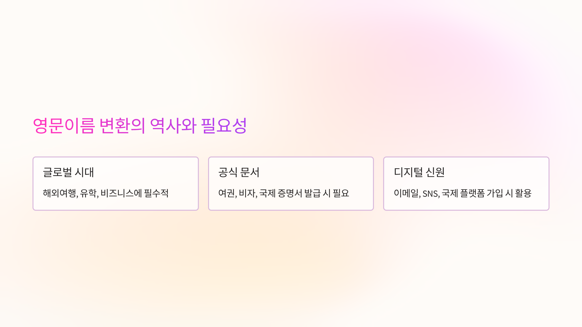 영문이름 변환은 글로벌 시대에 필수적인 과정이에요. 한국인들이 해외에서 활동하거나 국제적인 업무를 처리할 때 영문이름은 중요한 역할을 하죠. 여권 발급부터 해외 유학, 비즈니스 미팅까지 다양한 상황에서 정확한 영문이름이 필요해요. 오늘은 영문이름 변환의 모든 것을 자세히 알아볼게요! 😊