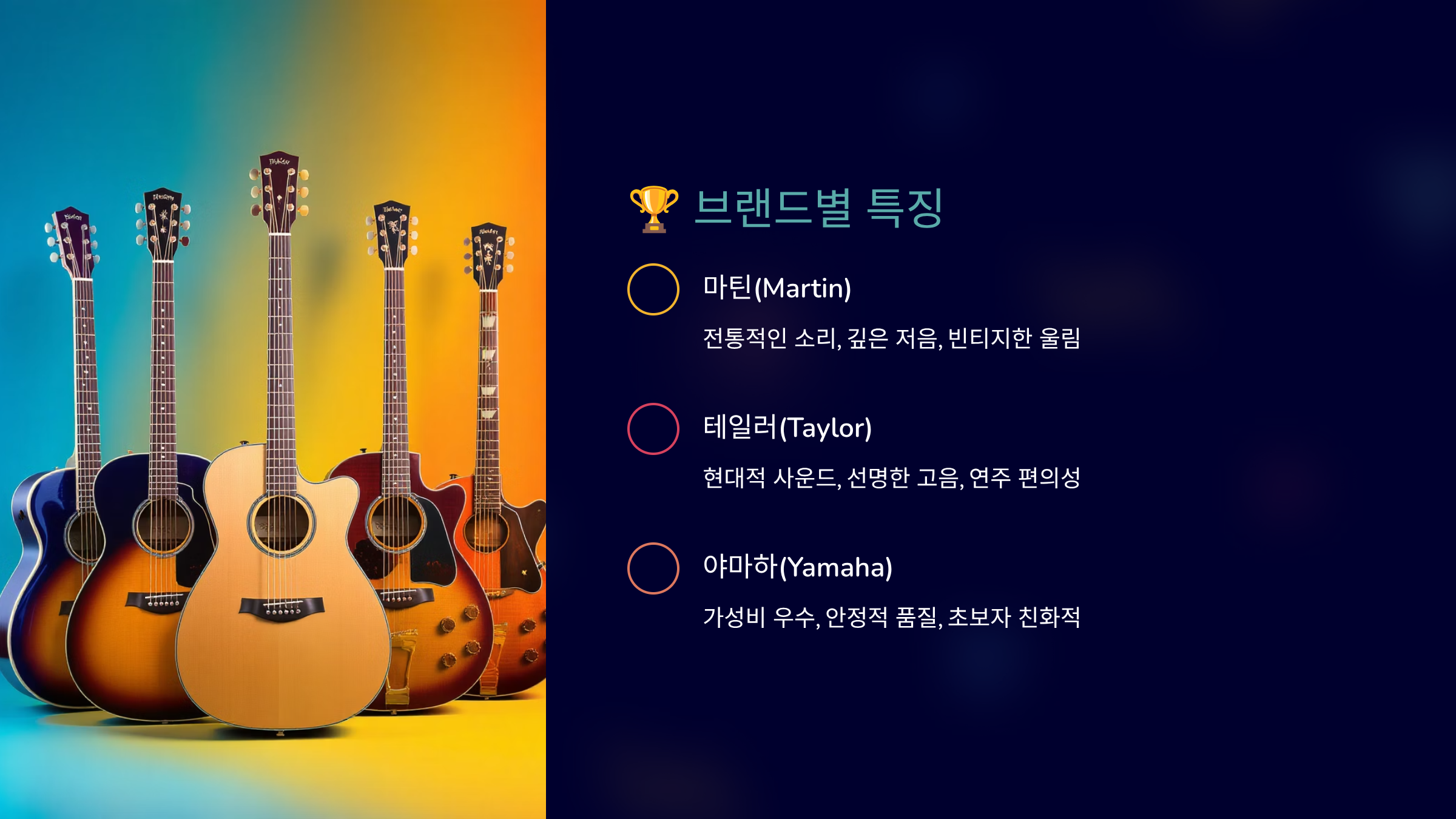 감성 어쿠스틱 기타는 핑거스타일, 발라드, 포크 음악에 특화된 악기예요. 부드러운 터치에도 풍부한 배음이 나오고, 섬세한 다이내믹 표현이 가능한 기타를 찾는 것이 중요해요. 오늘은 여러분이 자신만의 감성을 담을 수 있는 완벽한 기타를 찾을 수 있도록 모든 정보를 공유해 드릴게요.