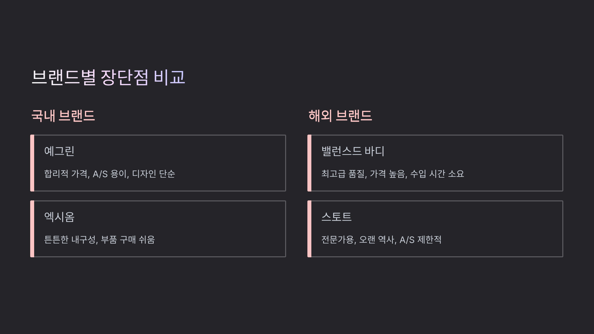 ⭐ 브랜드별 장단점 비교