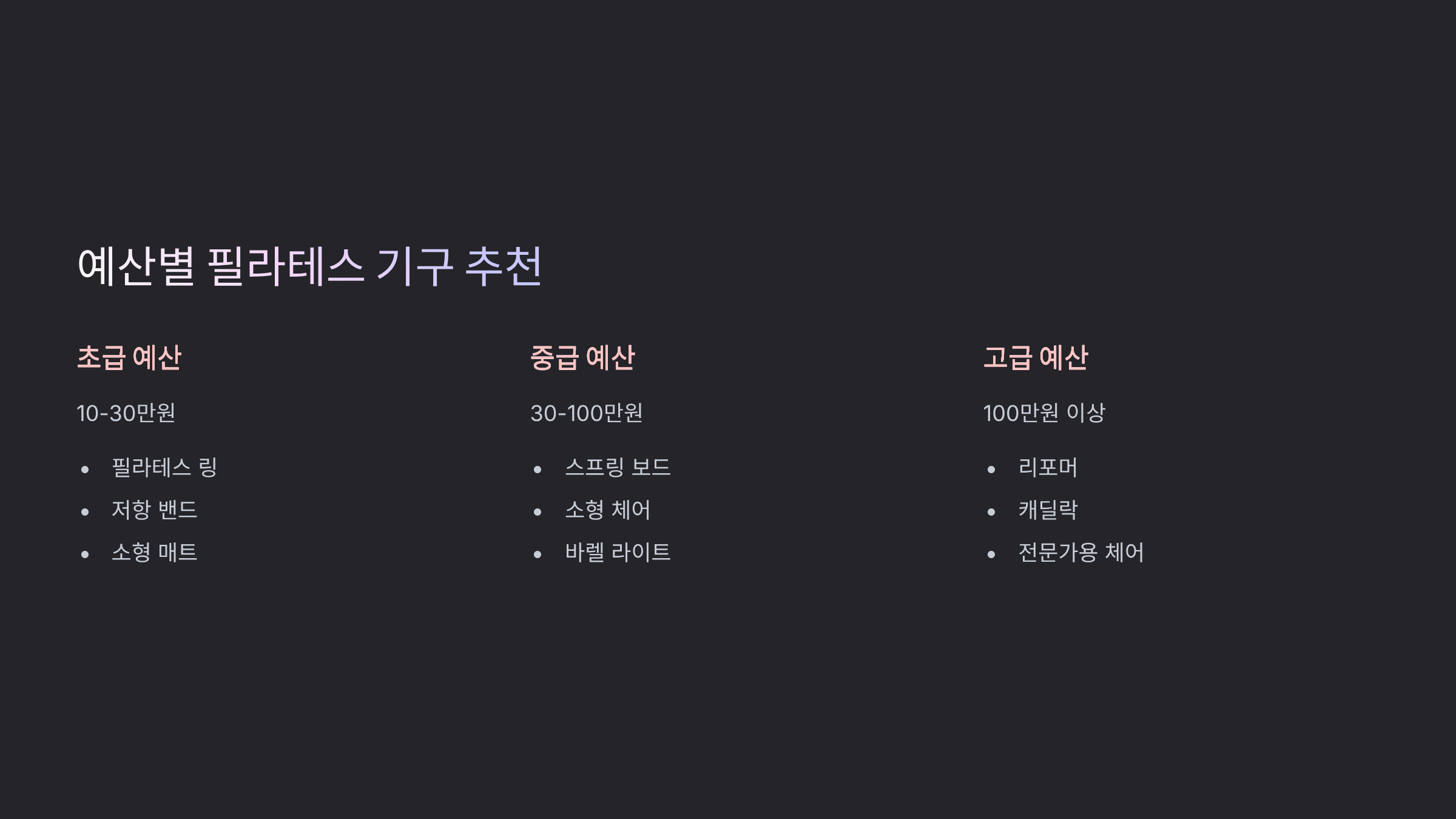 💰 예산별 필라테스 기구 추천