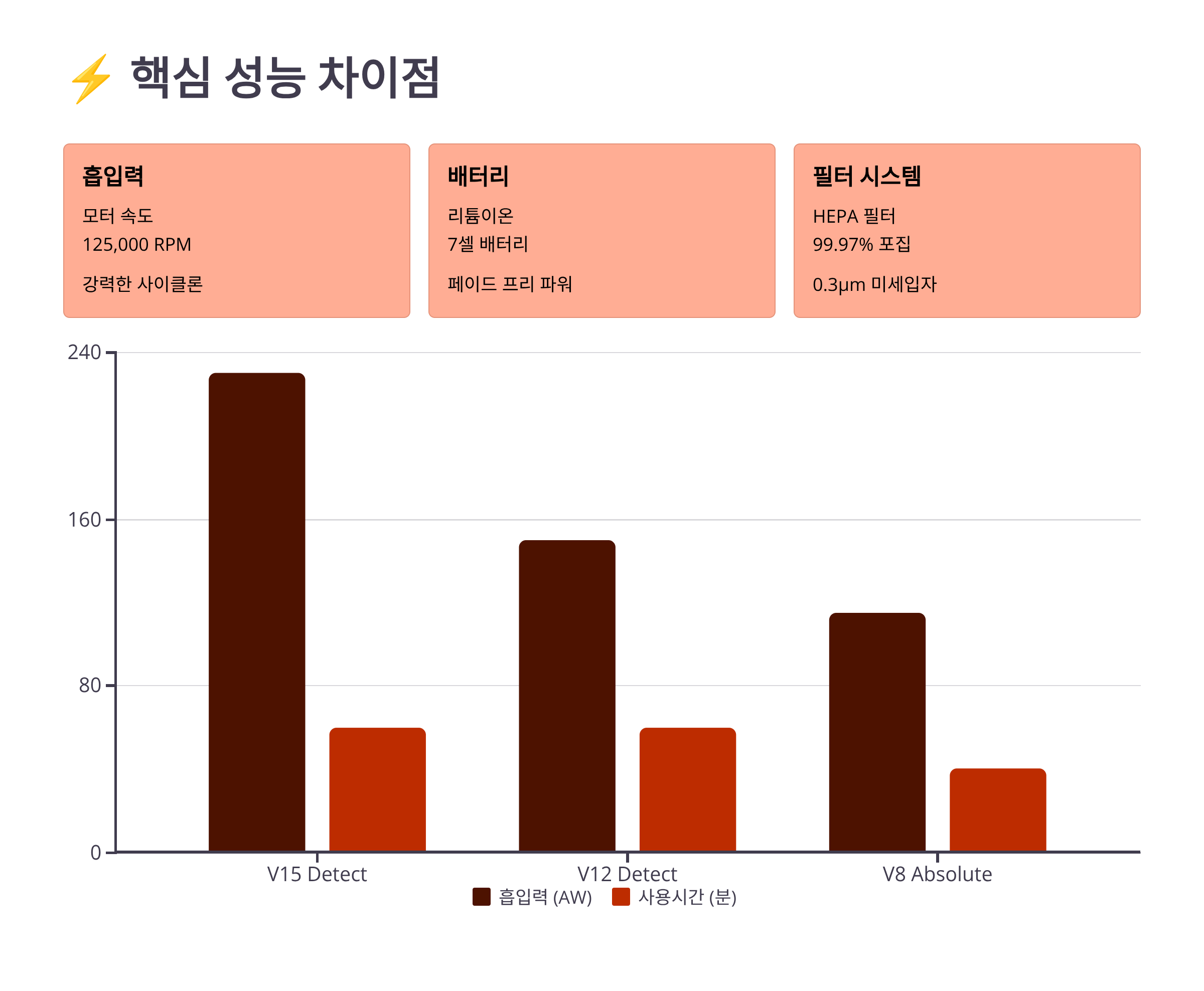 📊 다이슨 모델별 상세 스펙 비교