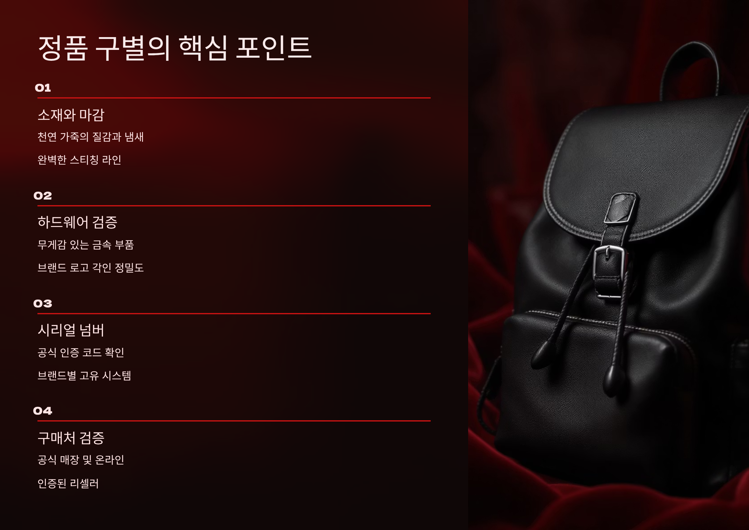 럭셔리 백팩을 구매할 때 정품 여부를 확인하는 것은 매우 중요해요. 먼저 시리얼 넘버를 확인해야 해요. 대부분의 럭셔리 브랜드는 고유한 시리얼 넘버를 제품에 부착하고 있답니다. 샤넬은 스티커 형태로, 루이비통은 가죽에 각인 형태로 시리얼 넘버가 있어요. 이 번호를 브랜드 공식 홈페이지나 매장에서 조회하면 정품 여부를 확인할 수 있죠.