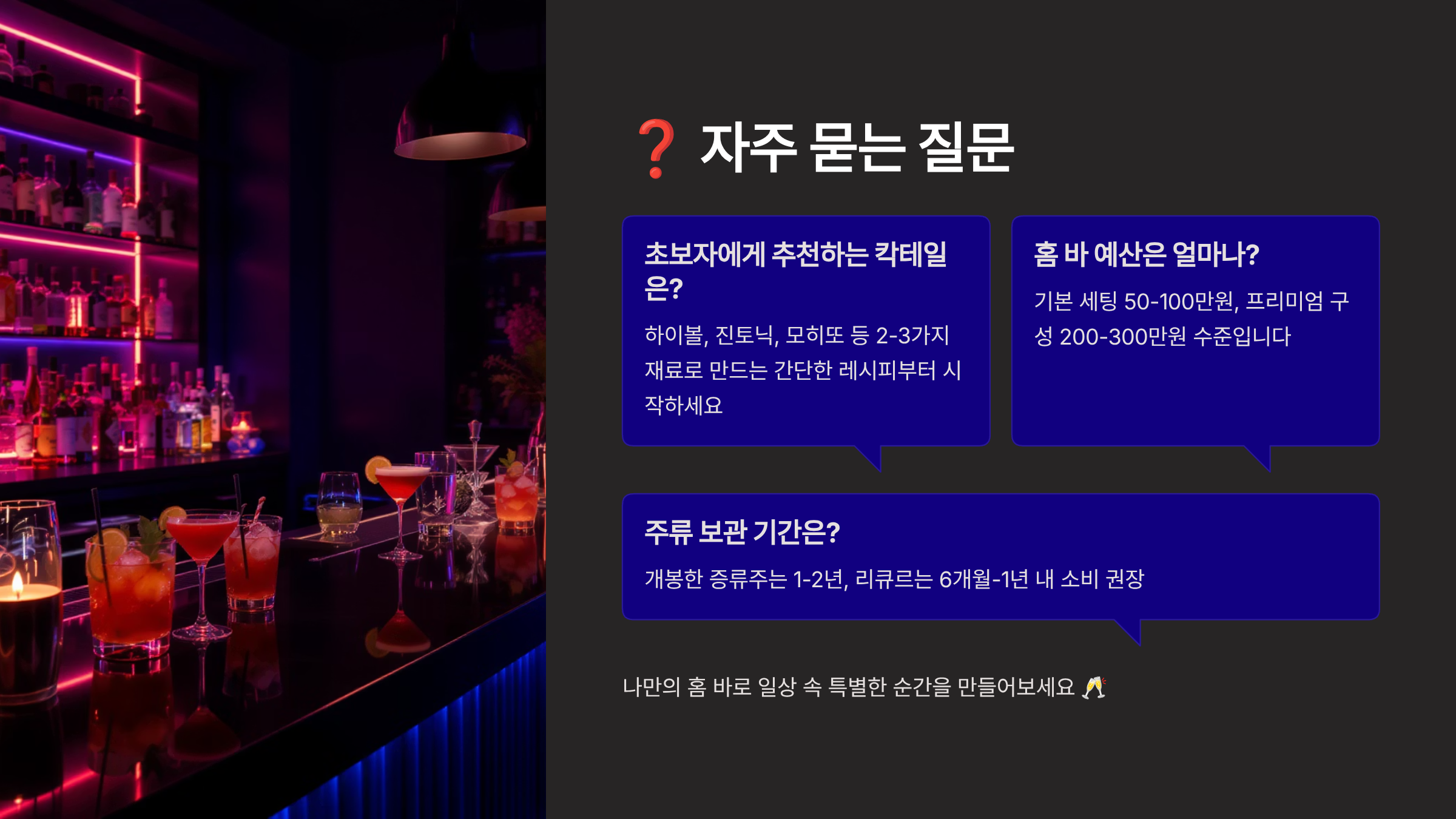 Q3. 칵테일을 전혀 못 만드는데 홈 바를 만들어도 될까요?