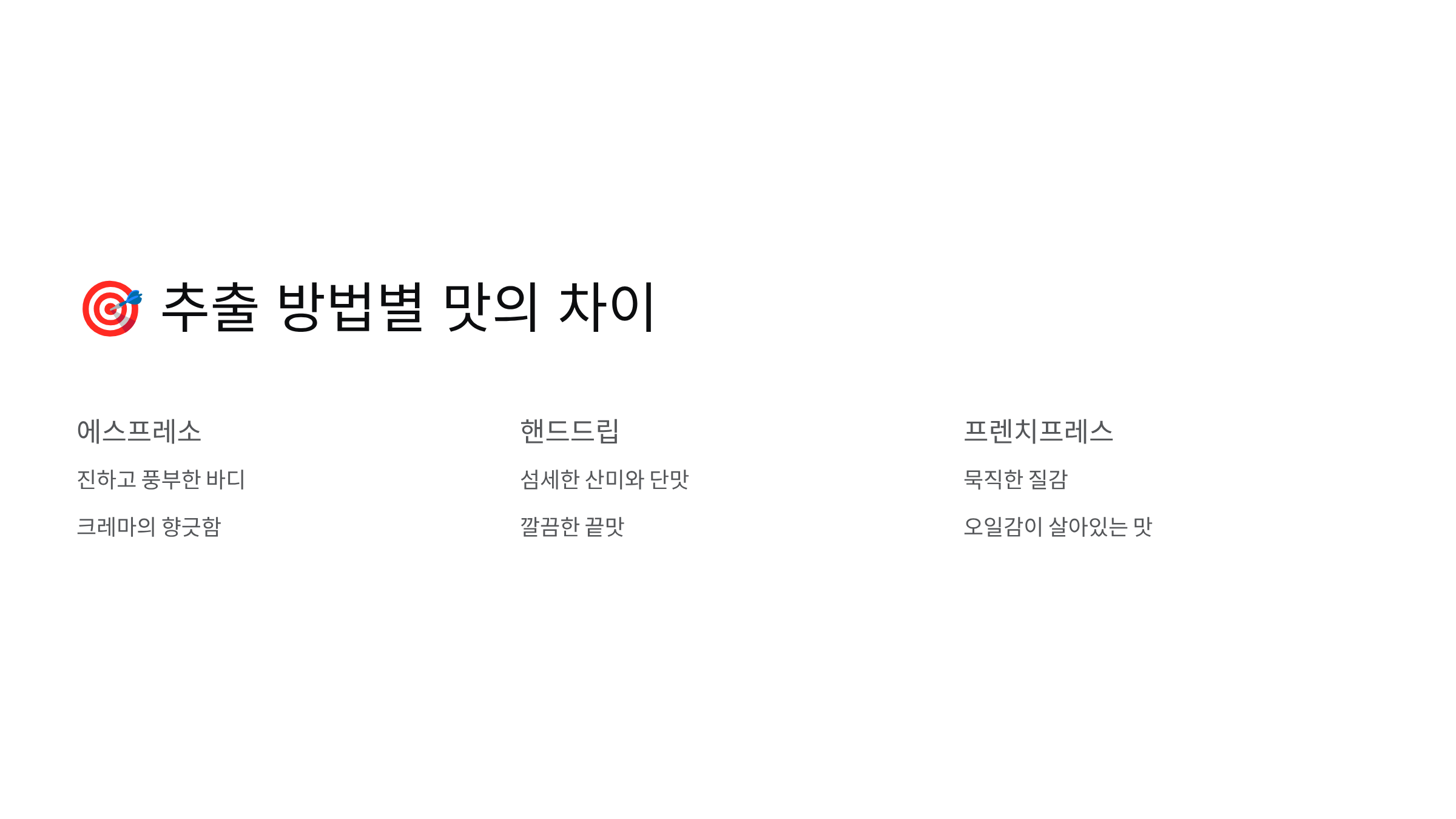 🎯 추출 방법별 맛의 차이