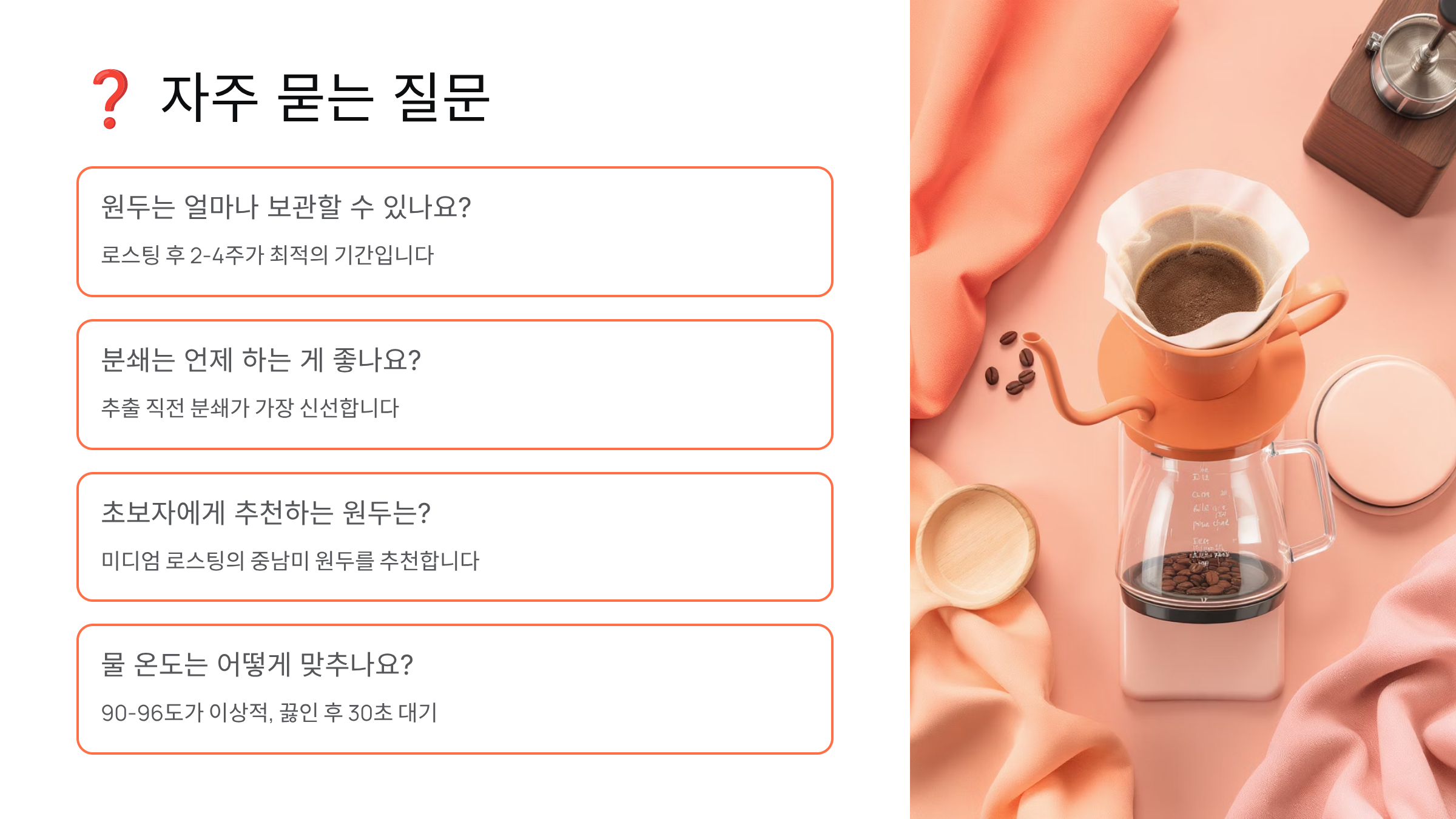 Q3. 집에서 카페 수준의 커피를 만들려면 어떤 장비가 필요한가요?