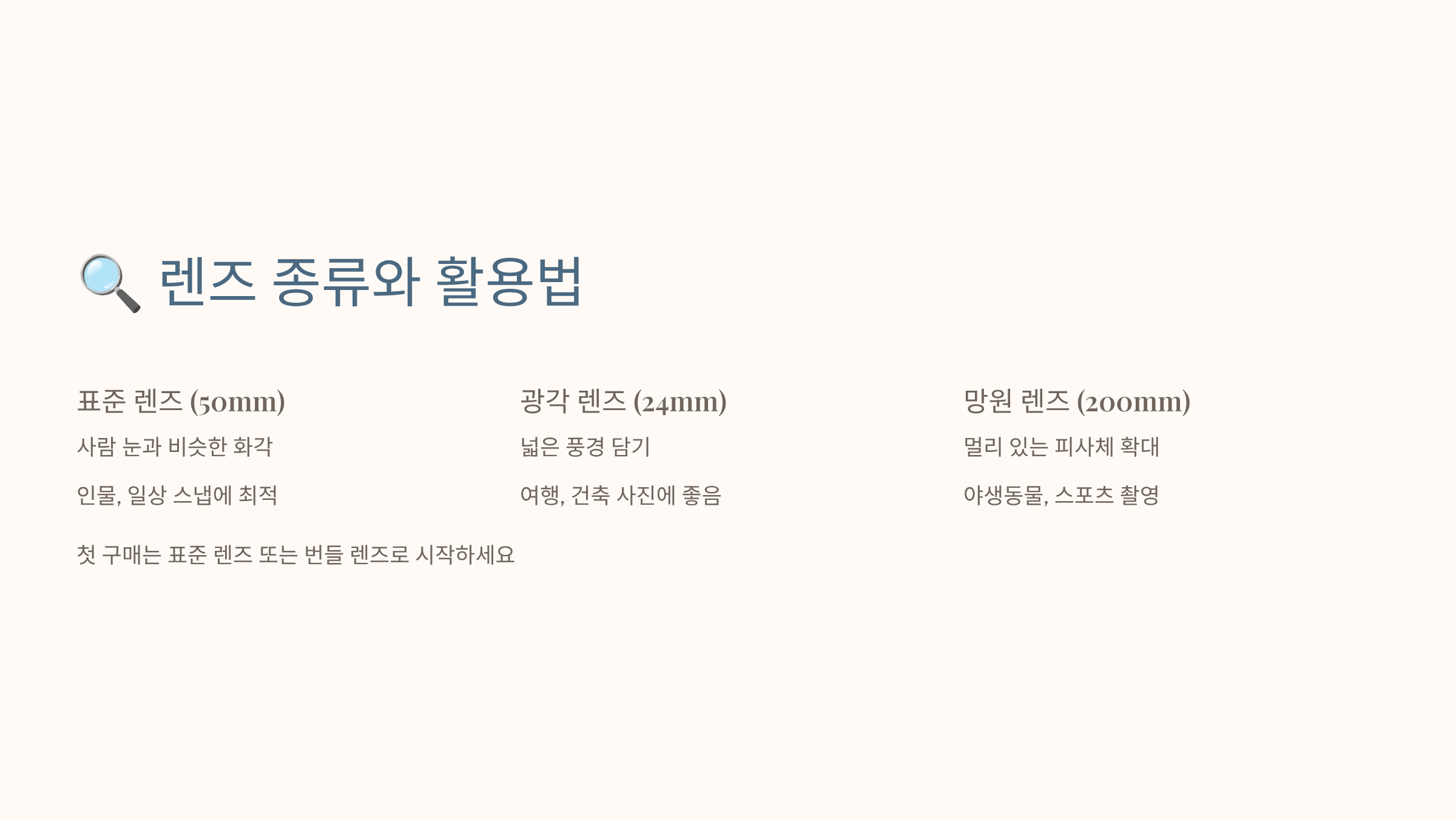 🔍 초점거리별 렌즈 활용법