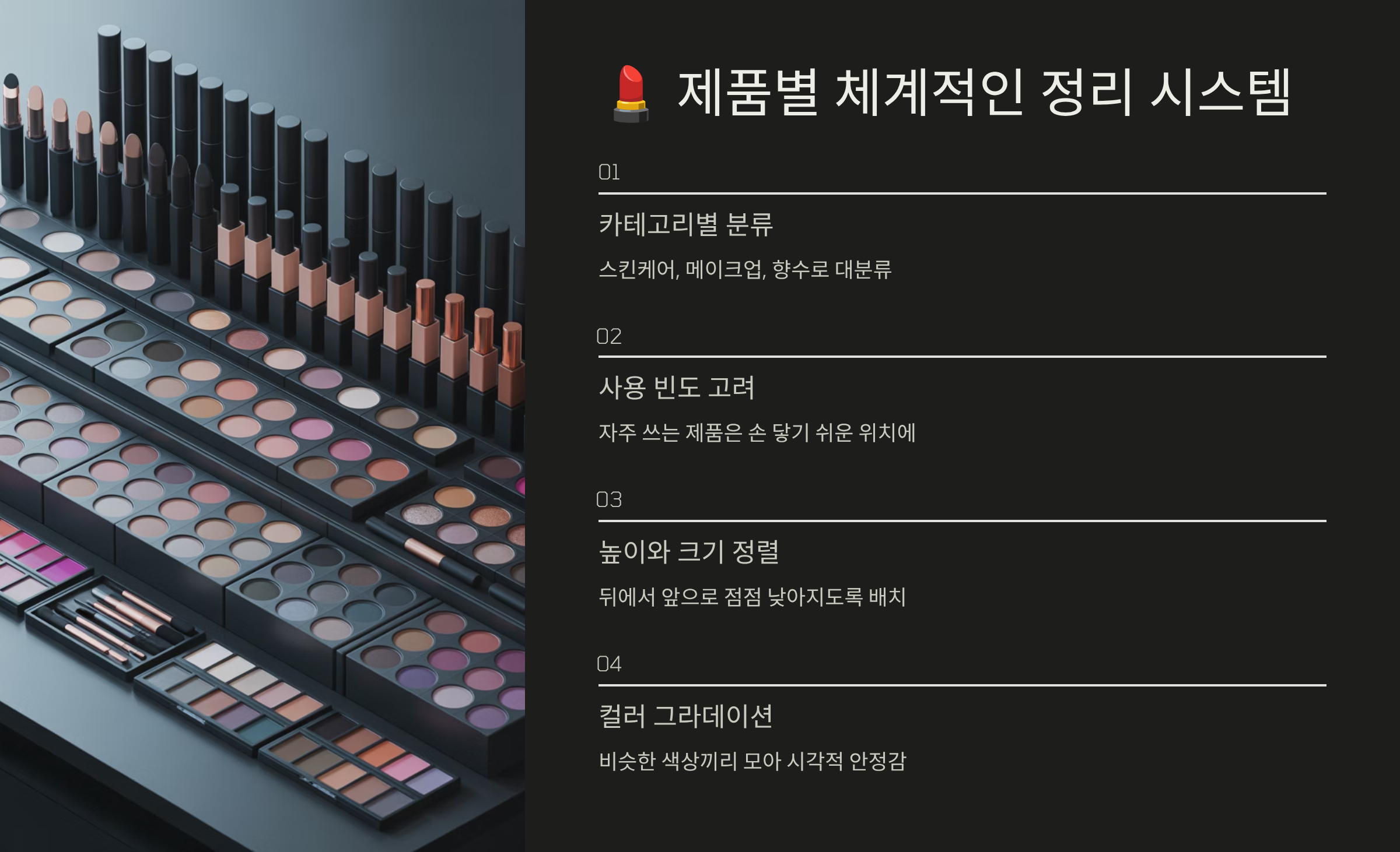 💄 제품별 체계적인 정리 시스템