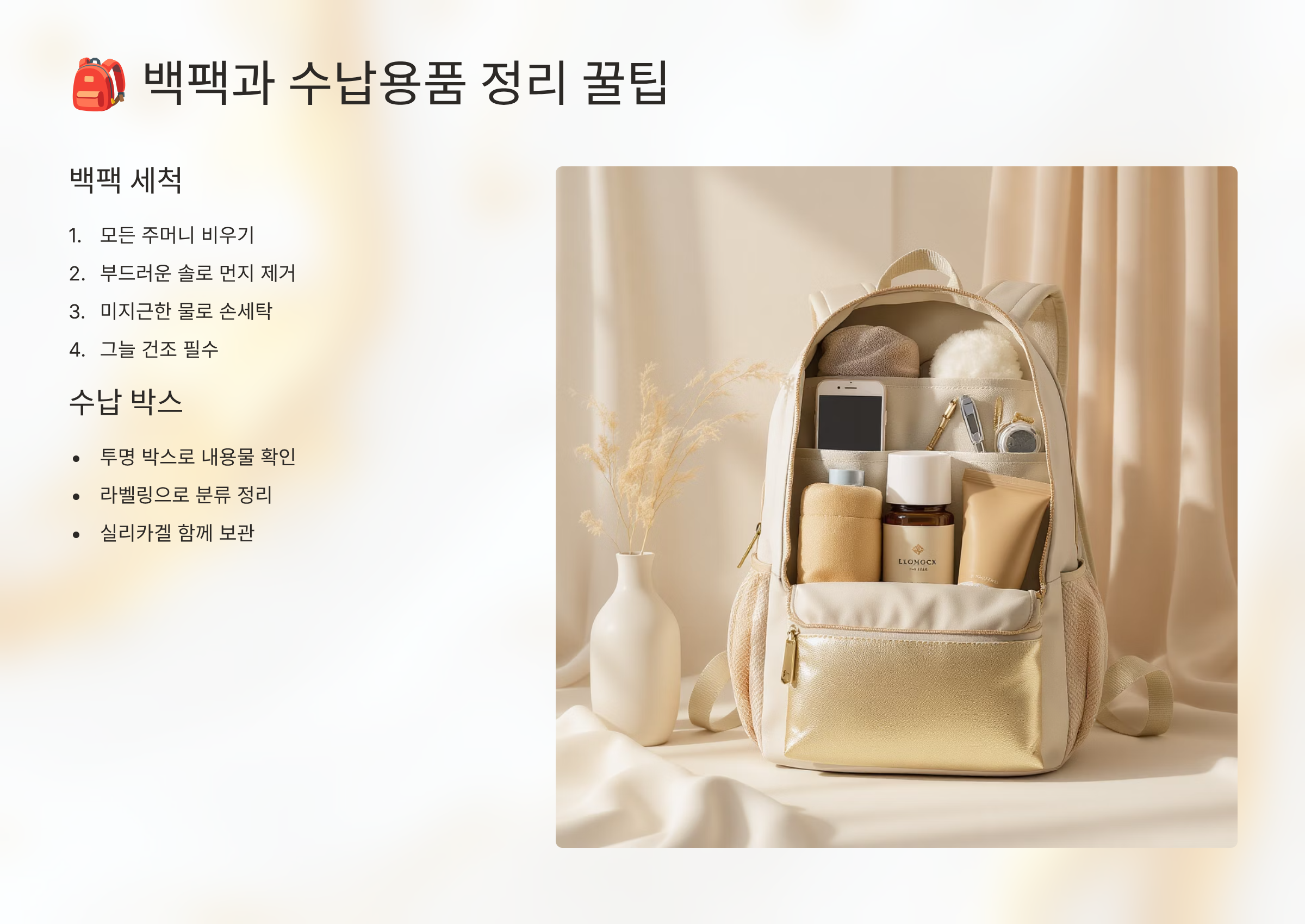 🎒 백팩과 수납용품 정리 꿀팁