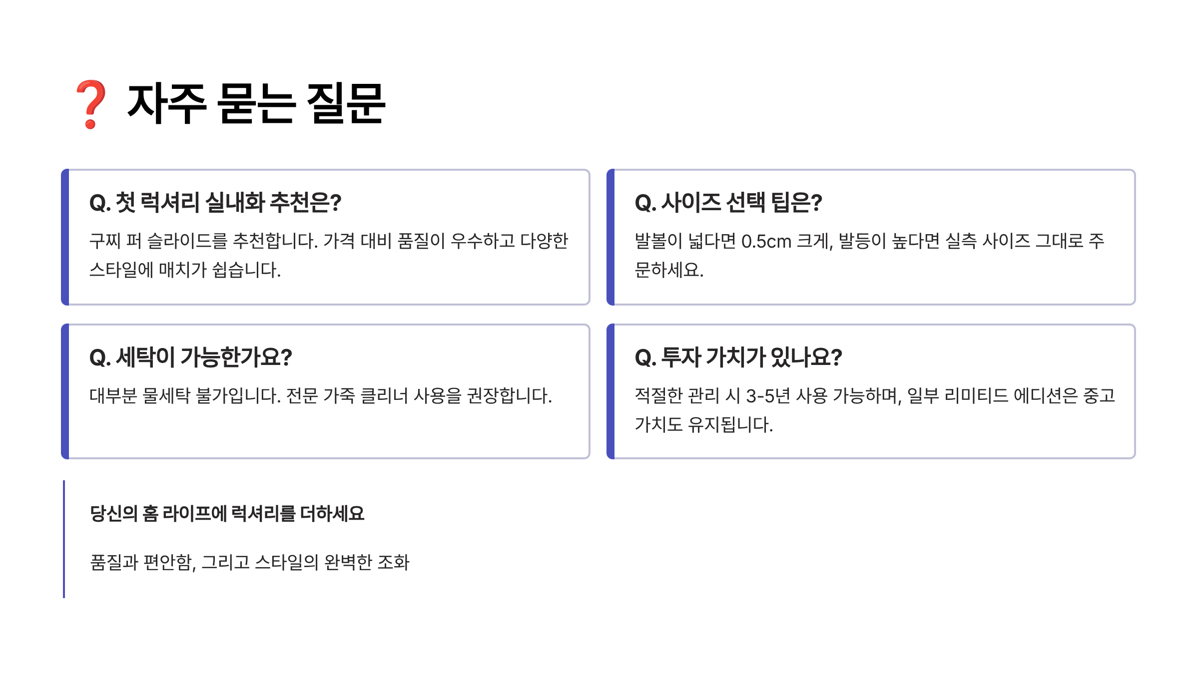 Q1. 럭셔리 실내화 첫 구매 시 어떤 브랜드가 좋을까요?