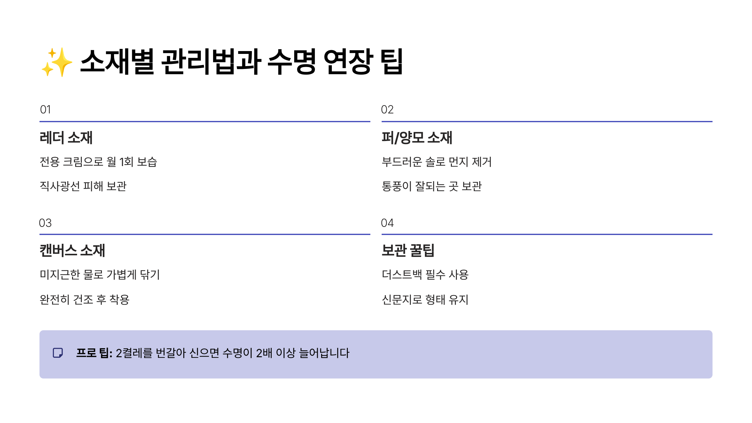 ✨ 소재별 관리법과 수명 연장 팁