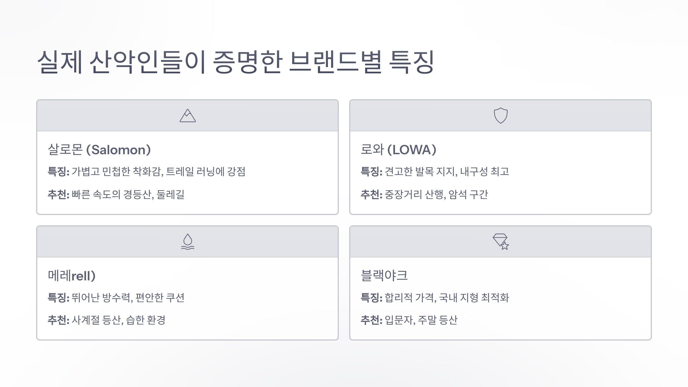 🏆 실제 산악인들이 증명한 브랜드별 특징
