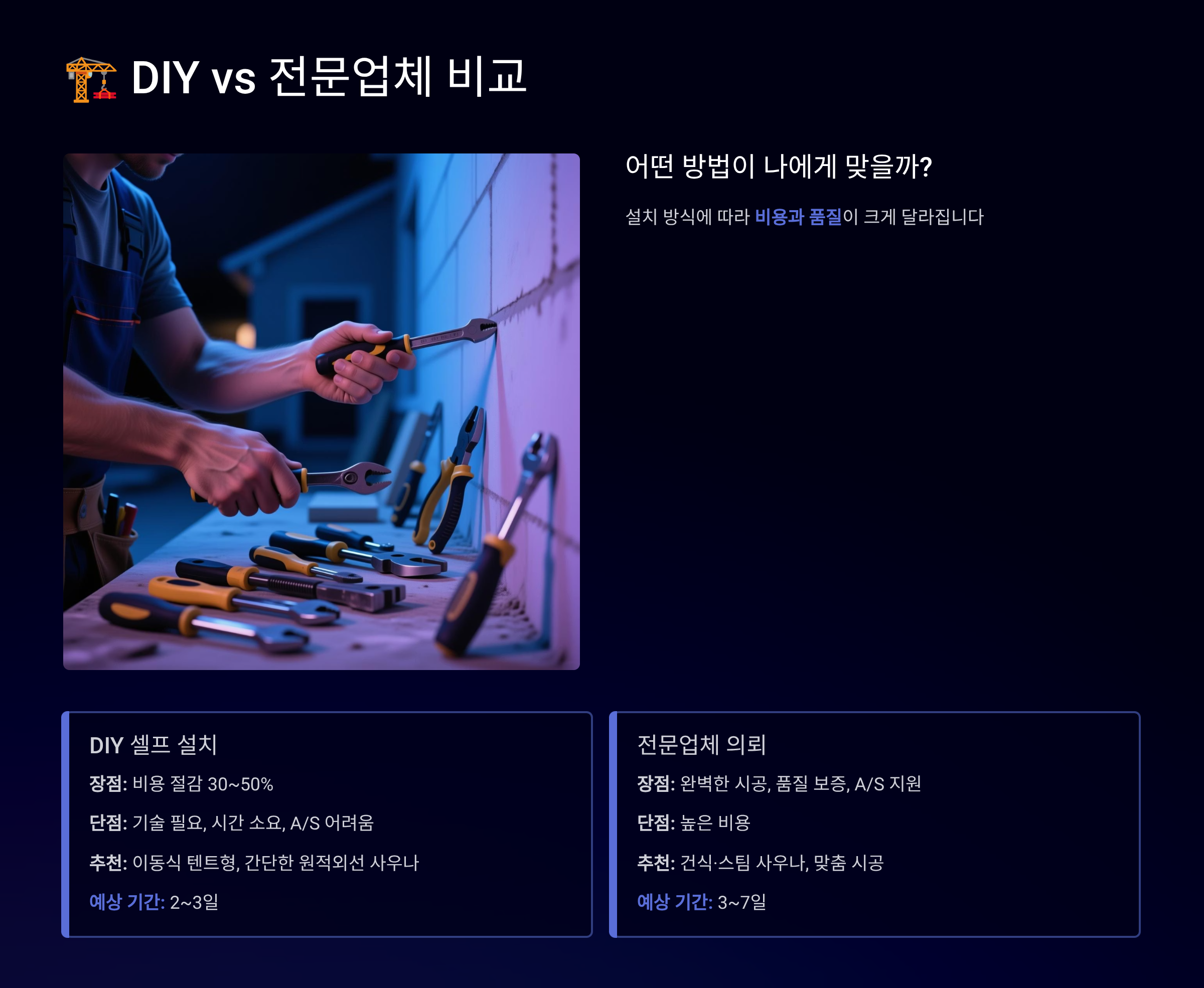 🏗️ DIY vs 전문업체 설치 비교분석