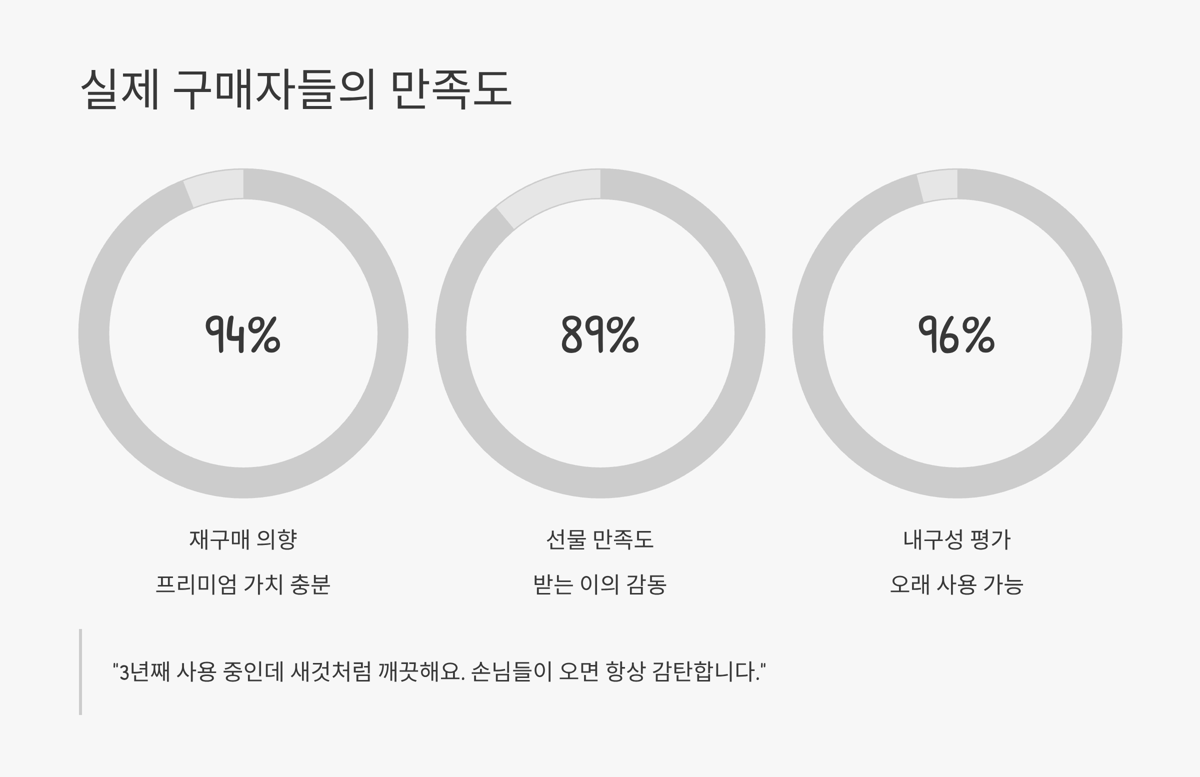 | 가격 대비 만족 | 89% | 처음엔 비싸지만 가치 있음 |