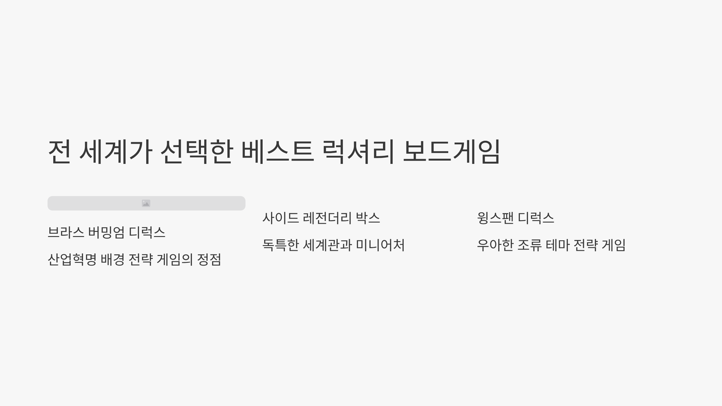 사회적 경험도 달라져요. 친구들을 초대해서 럭셔리 보드게임을 테이블에 펼쳐놓으면 모두의 눈이 반짝반짝 빛나는 것을 볼 수 있답니다. 게임을 시작하기 전부터 컴포넌트를 구경하고 감탄하는 시간이 하나의 즐거움이 되어요. 이런 경험은 일반 보드게임에서는 느끼기 어렵죠.
