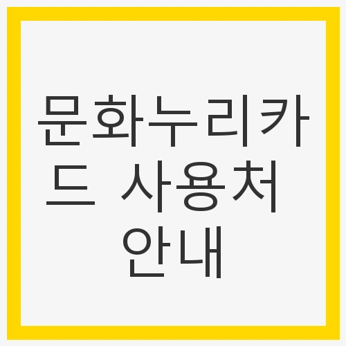 자동재충전 시스템은 사용자의 불편을 최소화하면서도, 문화누리카드를 최대한 활용할 수 있도록 돕기 위해 마련되었습니다. 이를 통해 카드 사용자가 문화생활을 더욱 쉽게 누릴 수 있는 환경이 조성되고 있습니다. 그럼 이제 문화누리카드의 사용처에 대해 알아보겠습니다.